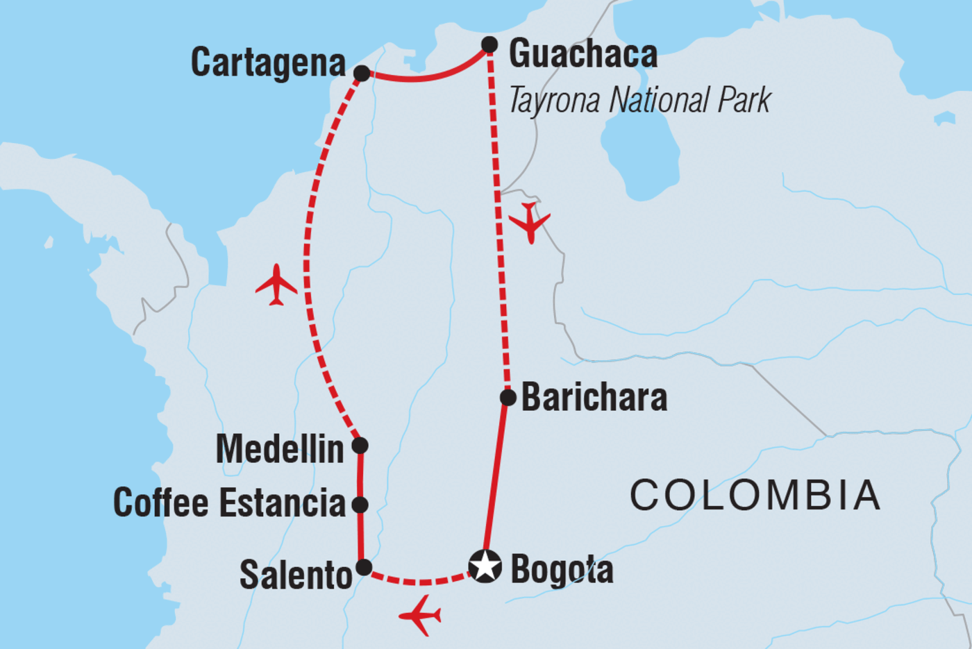 Entdecke Südamerikas bestgehütetes Geheimnis auf dieser 17-tägigen Reise durch die grünen Berge und feinen Strände Kolumbiens. Mach dich auf in das ruhige Hochland von Kolumbiens berühmter Kaffeeregion und entdecke die süßere, sanftere Seite dieses missverstandenen Landes. Verliebe dich in das Herz Bogotas, faulenze an den palmengesäumten Stränden der Karibik und verbringe Zeit mit Einheimischen, die Gastfreundschaft neu definieren.