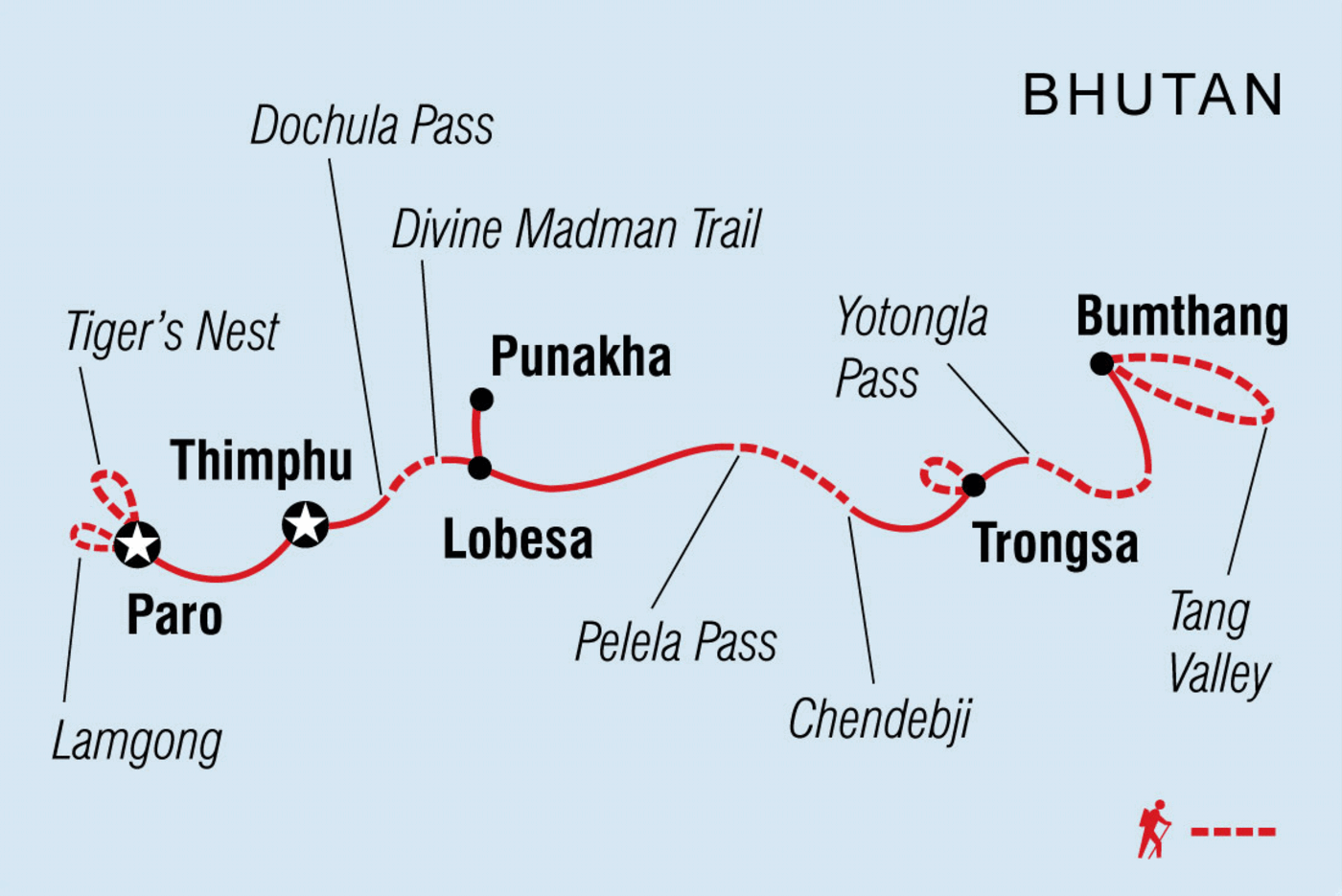 - Obwohl Bhutan ein kleines Land ist, wirst du lange Reisetage erleben, da die meisten Straßen einspurig sind. Das ist ein Teil des Abenteuers und eine gute Möglichkeit, deine Mitreisenden kennenzulernen. Bitte lies die Reiseroute sorgfältig durch, um die Fahrtzeiten abzuschätzen