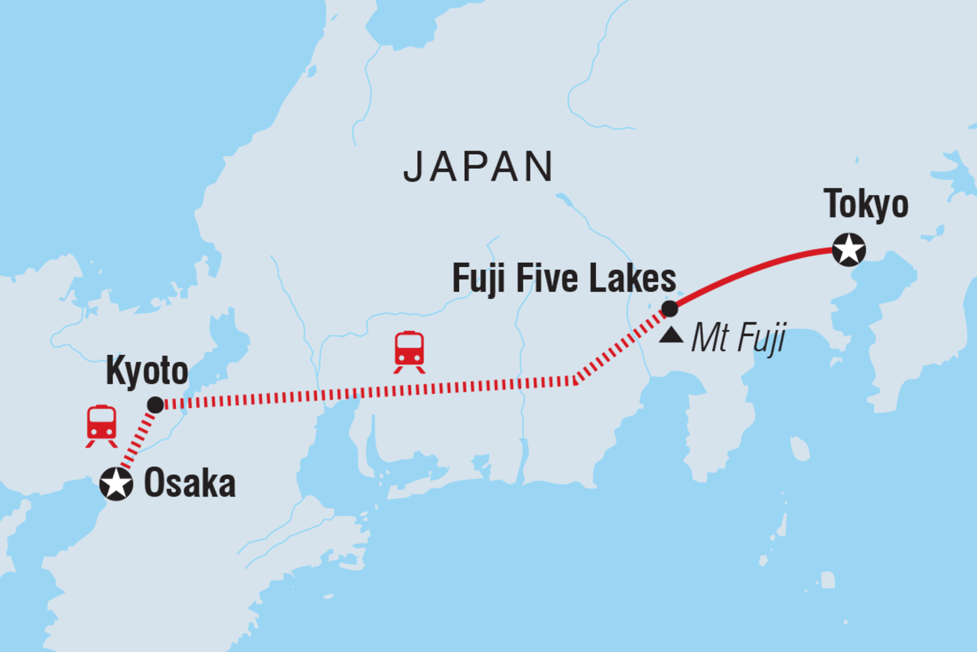 - Japan erkundet man am besten zu Fuß und mit öffentlichen Verkehrsmitteln. Du solltest fit genug sein, um die meiste Zeit des Tages auf den Beinen zu sein, und in der Lage, mit deinem Gepäck umzugehen, während du dich durch die belebten Bahnhöfe bewegst. Wir empfehlen bequeme Schuhe und leichtes Gepäck