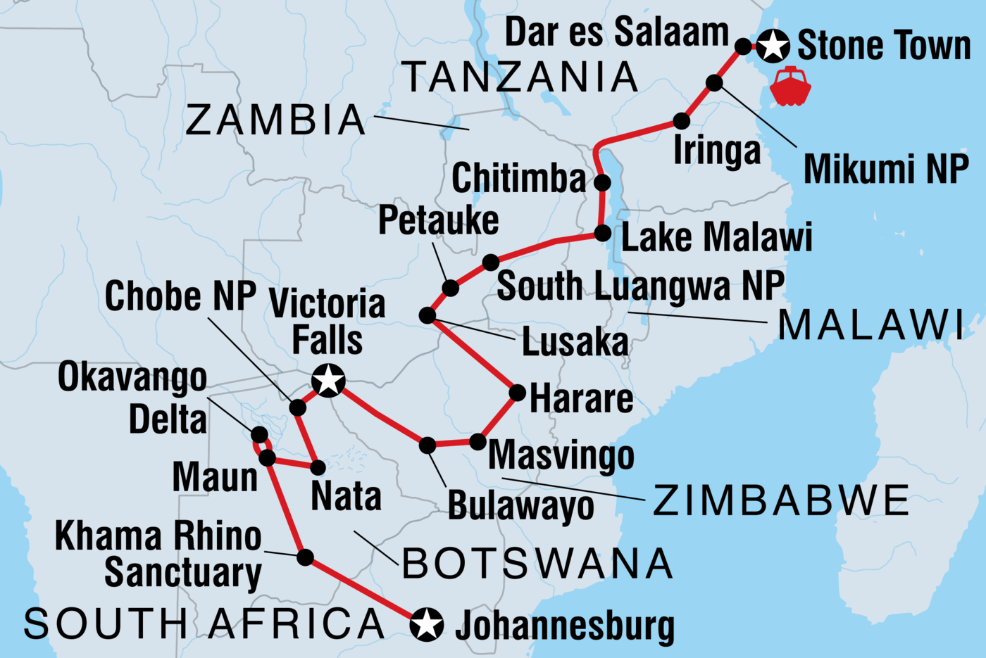 Johannesburg to Zanzibar