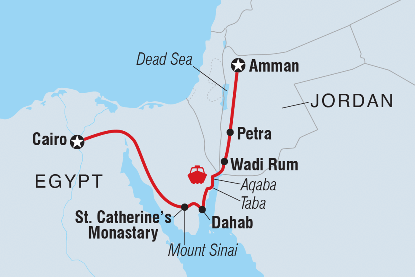 - Dies ist eine großartige Überlandreise von Jordanien nach Ägypten. Wir empfehlen, nach der Reise noch etwas Zeit in Kairo zu verbringen. Bitte sprich mit deiner Buchungsstelle, wenn du eine zusätzliche Unterkunft in Kairo buchen möchtest.