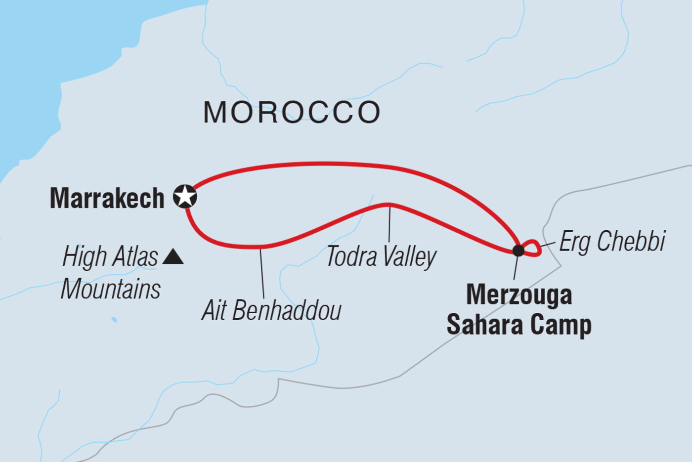 Wenn du nur ein paar Tage Zeit hast und der Sand und die Sterne der Sahara dich rufen, dann ist dieses dreitägige Abenteuer genau das Richtige für dich. Mach eine Rundreise von Marrakesch in die Wüste und über die Dünen. Beobachte den Sonnenuntergang vom Rücken eines Kamels aus, den Sonnenaufgang über den Erg Chebbi-Dünen und zelte unter den nordafrikanischen Sternen. Unterwegs besuchst du den alten Ksar von Ait Benhaddou und das üppige Todra-Tal und trinkst in beiden Orten Tee und brichst das Brot mit Mitgliedern spezieller Frauenvereinigungen. Ein örtlicher Reiseleiter begleitet dich in einem komfortablen Fahrzeug und gibt dir auf Schritt und Tritt Einblicke in die lokale Kultur, Geschichte und Geografie.
