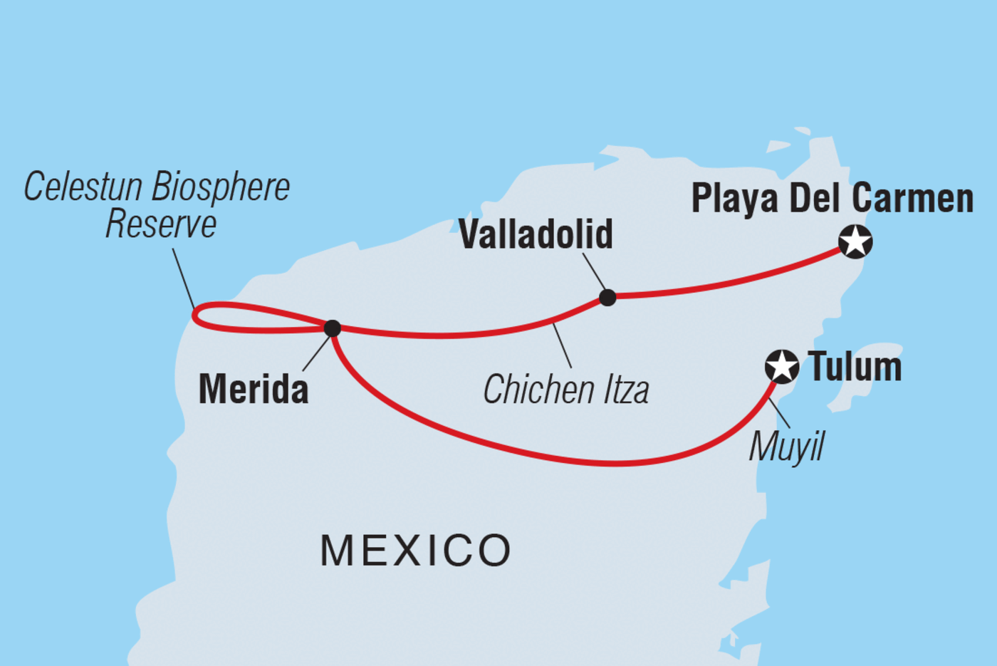 Die mexikanische Halbinsel Yucatan ist in jeder Hinsicht pulsierend: türkisfarbenes Wasser, pastellfarbene Gebäude und eine traditionelle Kultur, die immer noch lebendig ist. Auf einer achttägigen Premium-Reise erlebst du das Beste der Region: von der üppigen Küste der Riviera Maya über die farbenfrohe Stadt Valladolid und die historische Stadt Merida bis hin zu den weißen Sandstränden von Tulum. Bei Besuchen in Chichen Itza, einem der sieben Weltwunder, Muyil und der archäologischen Stätte von Tulum erfährst du die alten Geheimnisse der Maya. In Begleitung eines ortskundigen Reiseleiters triffst du einheimische Maya-Familien, Naturschützer und Historiker und lernst eine Seite des Landes kennen, die die meisten nicht zu sehen bekommen.