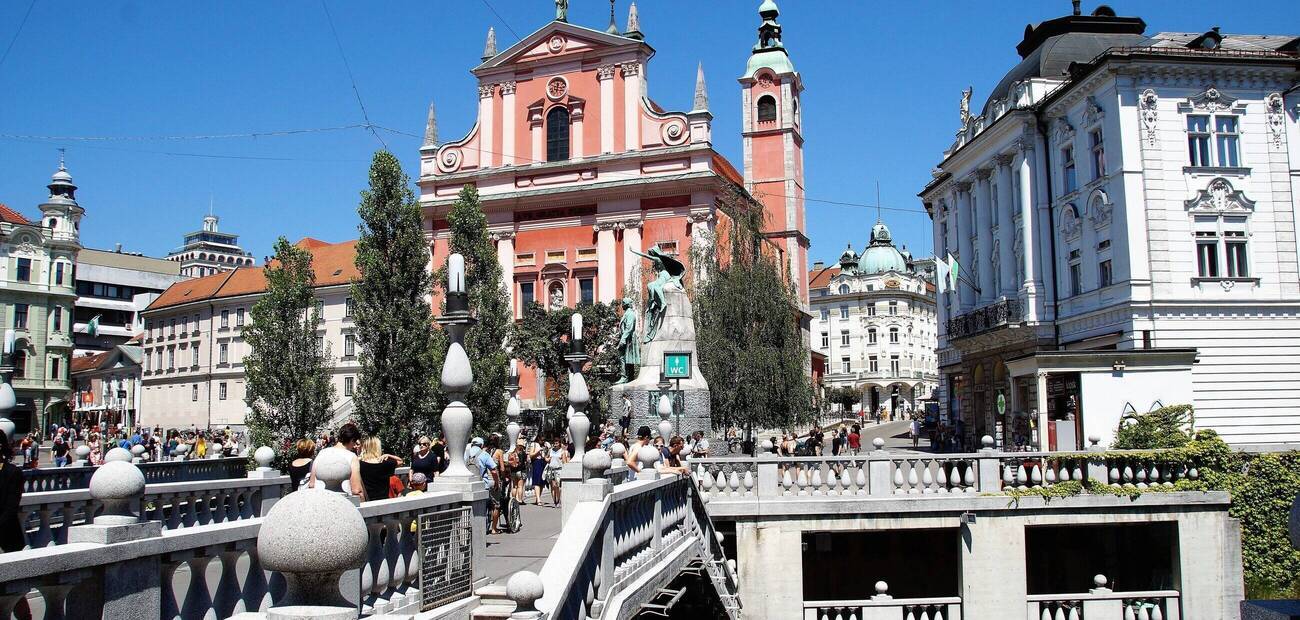 Kopfsteinpflaster, bunte Häuser und charmante Cafés entlang der Ljubljanica laden zum Bummeln und Entdecken ein.